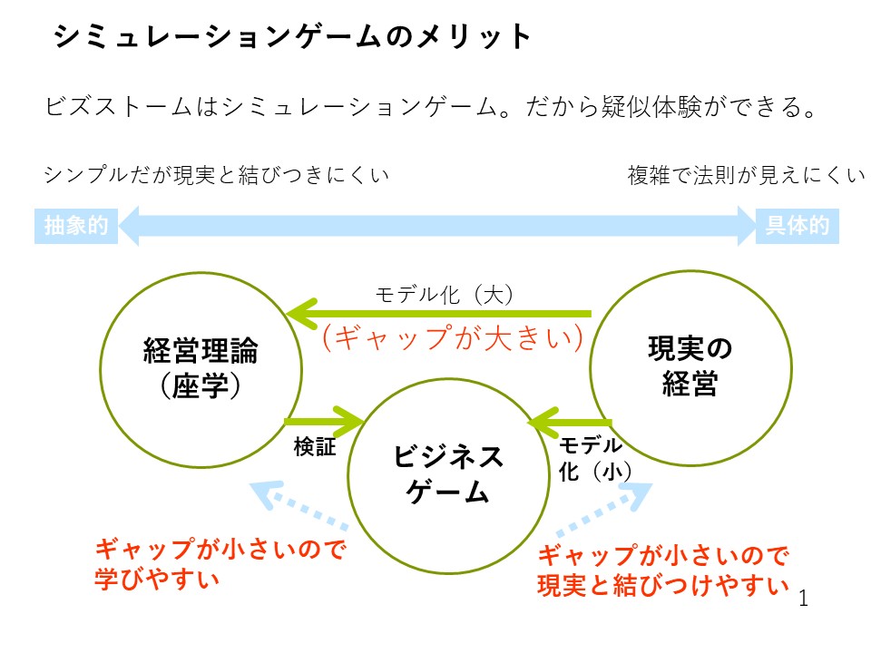 そこで、ビジネスゲームを「学びのギャップ」を埋めるツールとして介在させ、経営を疑似体験することで「経営学を学ぶ必要性」に気づき、「経営学って面白そうだ」と興味を持つきっかけになればと思い導入しました。